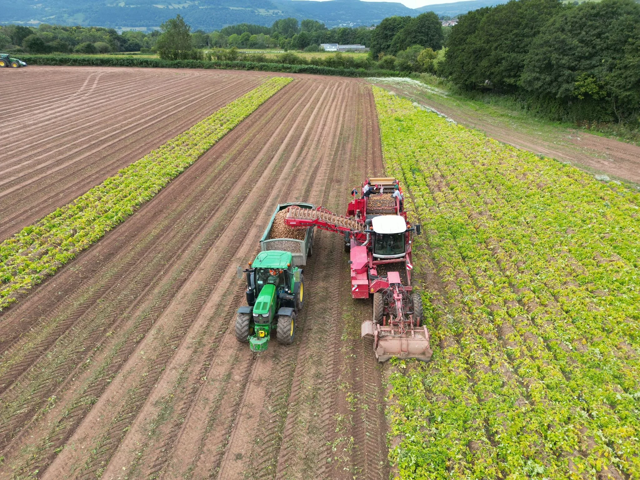 We grow potatoes for both the chipping and crisping markets. Harvest runs from July through to October, beginning with our chipping varieties, which are delivered directly from the field to factories for immediate processing. Our crisping varieties are lifted later in the season and carefully stored. The following year, they are washed and prepared before being supplied for crisp production.